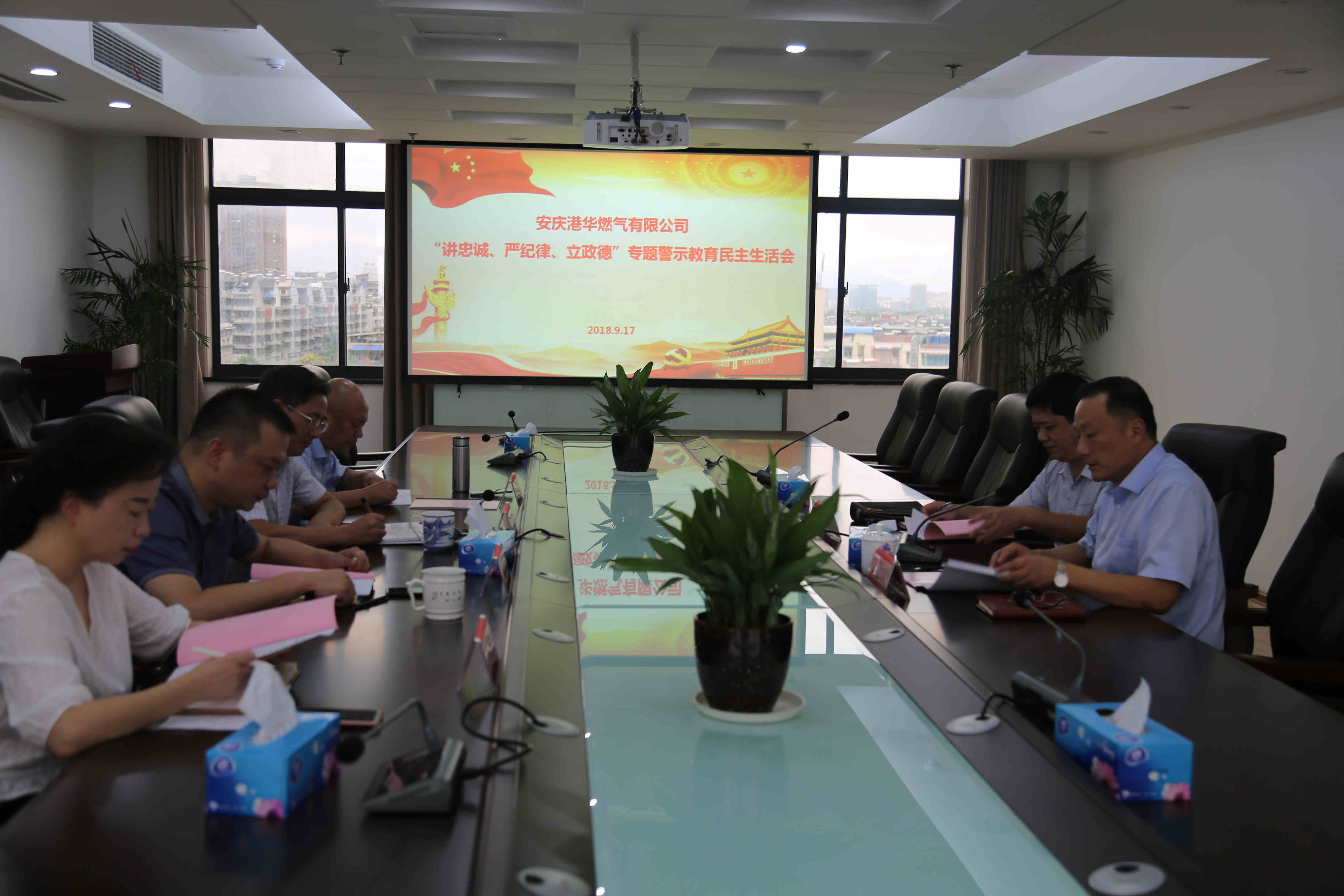 9月17日,安慶港華燃?xì)庥邢薰军h委召開“講忠誠、嚴(yán)紀(jì)律、立政德”專題警示教育民主生活會。市城管局黨委委員、副局長姚志蒞會指導(dǎo),公司黨委書記、董事長何族興主持會議。