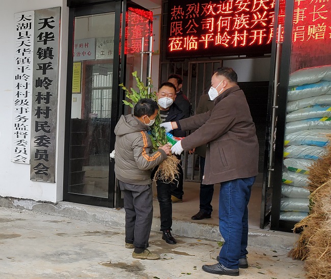 人勤春來早,奮進(jìn)正當(dāng)時(shí)。3月2日一大早,由安慶市煤氣公司和安慶港華共同免費(fèi)捐贈(zèng)的4600棵油茶苗和10噸化肥等農(nóng)資,準(zhǔn)時(shí)送達(dá)太湖天華鎮(zhèn)平嶺村村部。這是安慶港華黨委書記何族興、工會(huì)主席韓高中帶領(lǐng)公司扶貧工作組為平嶺村200余戶貧困戶送去的春耕春種“大禮包”,也吹響了安慶港華定點(diǎn)幫扶“春季攻勢(shì)”的第一聲號(hào)角。