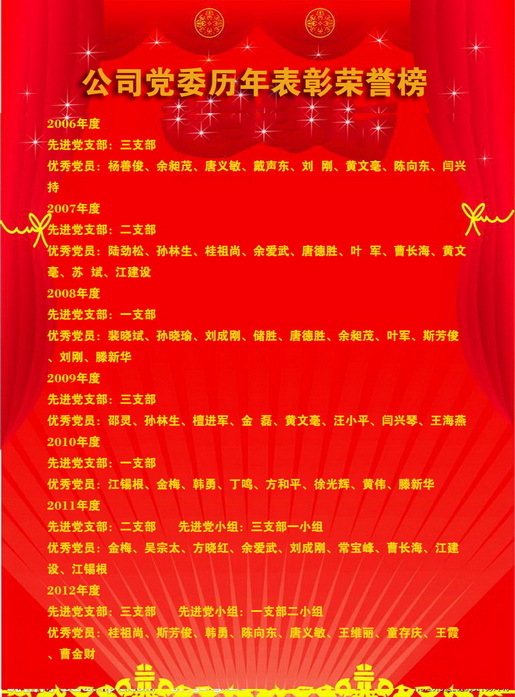 公司黨委歷年表彰榮譽(yù)榜 發(fā)布時(shí)間:2013-12-13    閱讀次數(shù):13319次