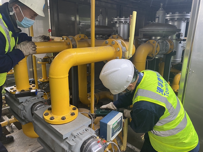 本次演練模擬了某商業(yè)綜合體調(diào)壓柜放散閥接口發(fā)生燃?xì)庑孤?,安慶港華接到險(xiǎn)情報(bào)告后迅速啟動(dòng)一級(jí)應(yīng)急響應(yīng),派出專業(yè)搶險(xiǎn)人員第一時(shí)間趕赴現(xiàn)場(chǎng)關(guān)閉燃?xì)庹{(diào)壓站進(jìn)站總閥、及時(shí)切斷氣源,并立即組織人員對(duì)調(diào)壓站內(nèi)漏氣點(diǎn)進(jìn)行修復(fù)。在修復(fù)完成后,再次對(duì)周邊過(guò)道等公共區(qū)域仔細(xì)檢測(cè)燃?xì)鉂舛龋苊馊細(xì)鈿埩?。?jīng)多次查漏合格以后,嚴(yán)格依照規(guī)范,進(jìn)行恢復(fù)供氣。
