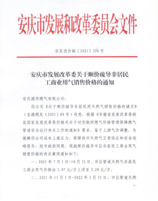安慶市發(fā)展改革委關(guān)于順價(jià)疏導(dǎo)冬季非居民工商業(yè)用氣價(jià)格的通知(2021) 發(fā)布時(shí)間:2022-01-12    閱讀次數(shù):9670次