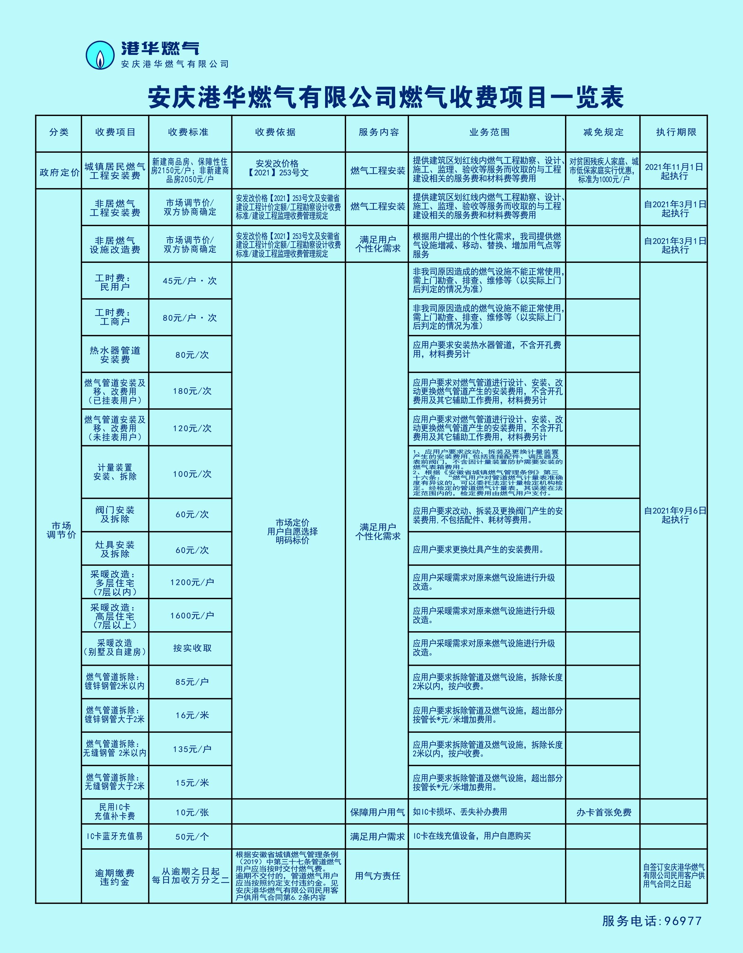 安慶市供氣行業(yè)收費項目清單 發(fā)布時間:2022-08-15    閱讀次數(shù):4278次