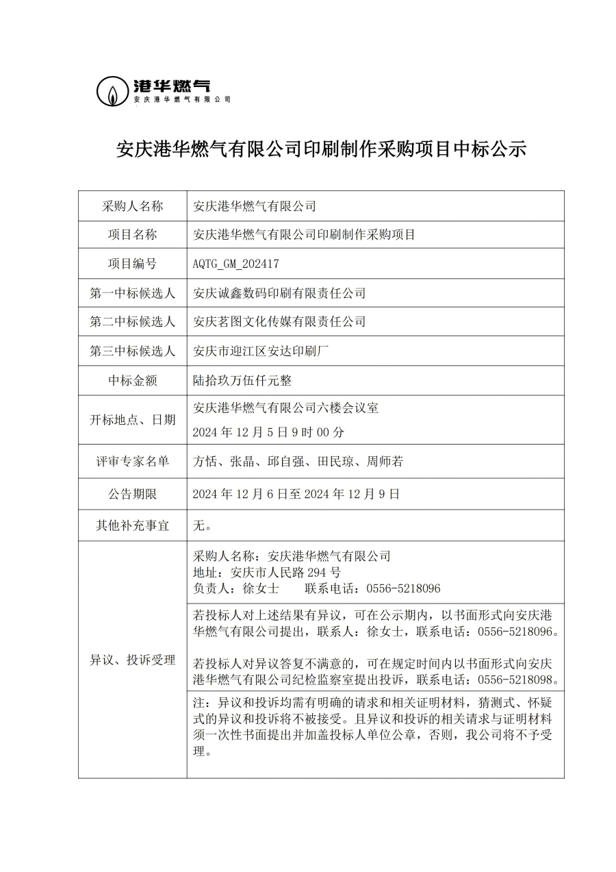 安慶港華燃?xì)庥邢薰居∷⒅谱鞑少忢椖恐袠?biāo)公示 發(fā)布時間:2024-12-06    閱讀次數(shù):3394次