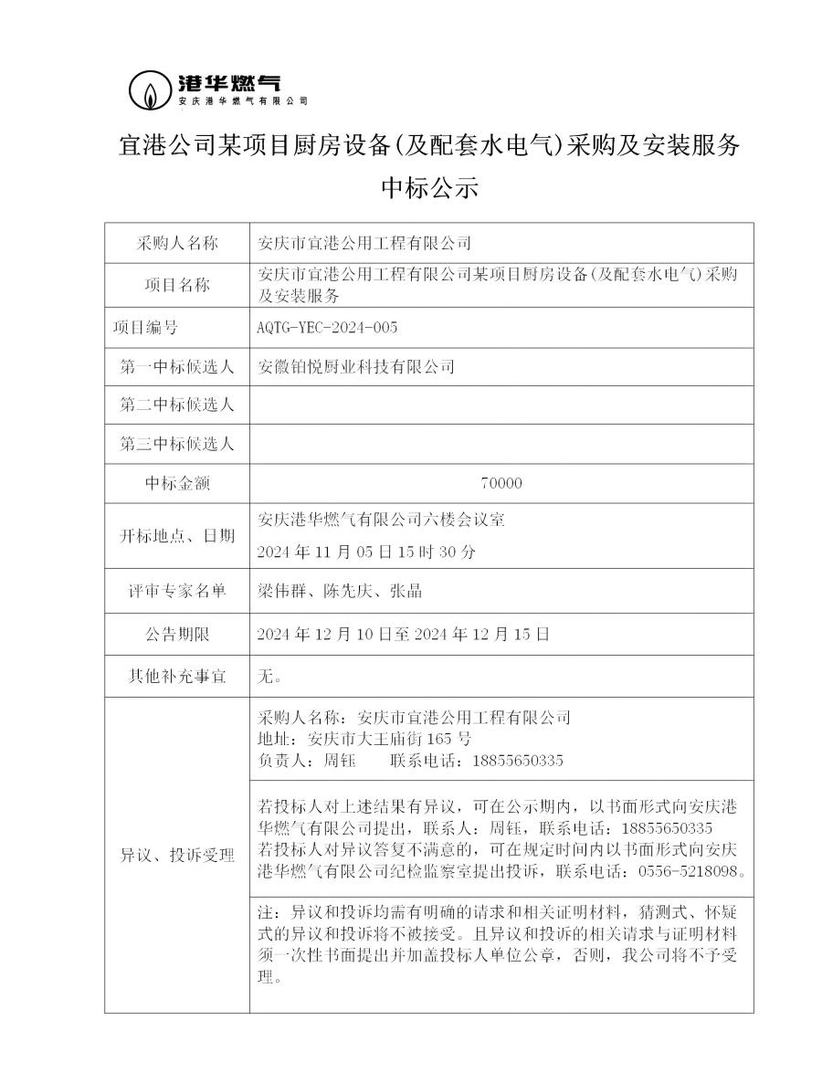 宜港公司某項目廚房設(shè)備(及配套水電氣)采購及安裝服務中標公示 發(fā)布時間:2024-12-09    閱讀次數(shù):3029次