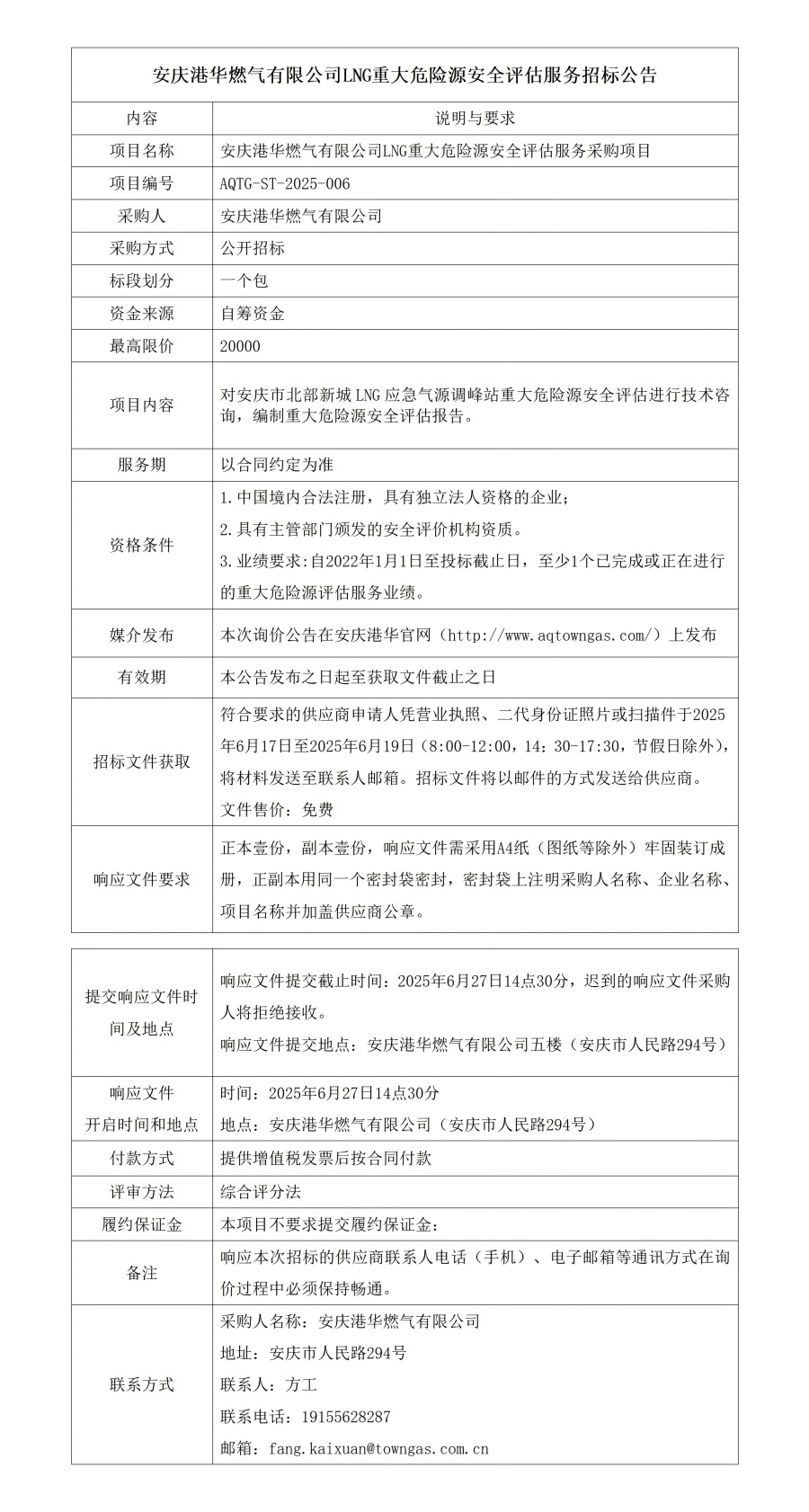 安慶港華燃?xì)庥邢薰綥NG重大危險(xiǎn)源安全評(píng)估服務(wù)招標(biāo)公告 發(fā)布時(shí)間:2025-06-17    閱讀次數(shù):1490次
